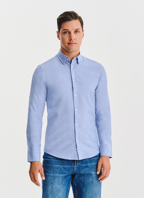 Regular fit świetnie pasuje do casualowych stylizacji – z rozpiętym kołnierzykiem, pod swetrem lub solo, gdy zależy Ci na prostym, codziennym zestawie.