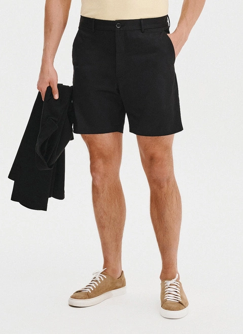 Gdy jednak chcesz wyglądać elegancko, ale wciąż letnio, wybierz szorty chinosy. To idealna propozycja do stylizacji smart casual: świetnie wyglądają z koszulą, polo, lekką marynarką czy mokasynami. Uszyte z przewiewnej bawełny, dostępne w kolorach klasycznego beżu, granatu, ale też zieleni czy bordo, sprawdzą się zarówno w miejskim wydaniu, jak i na wakacyjnym wyjeździe. Niektóre modele mają podwinięte nogawki, które dodają im lekkości i subtelnej elegancji.