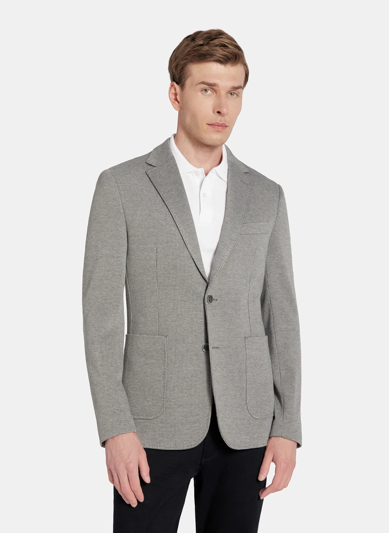 Szara marynarka w pepitkę z dzianiny