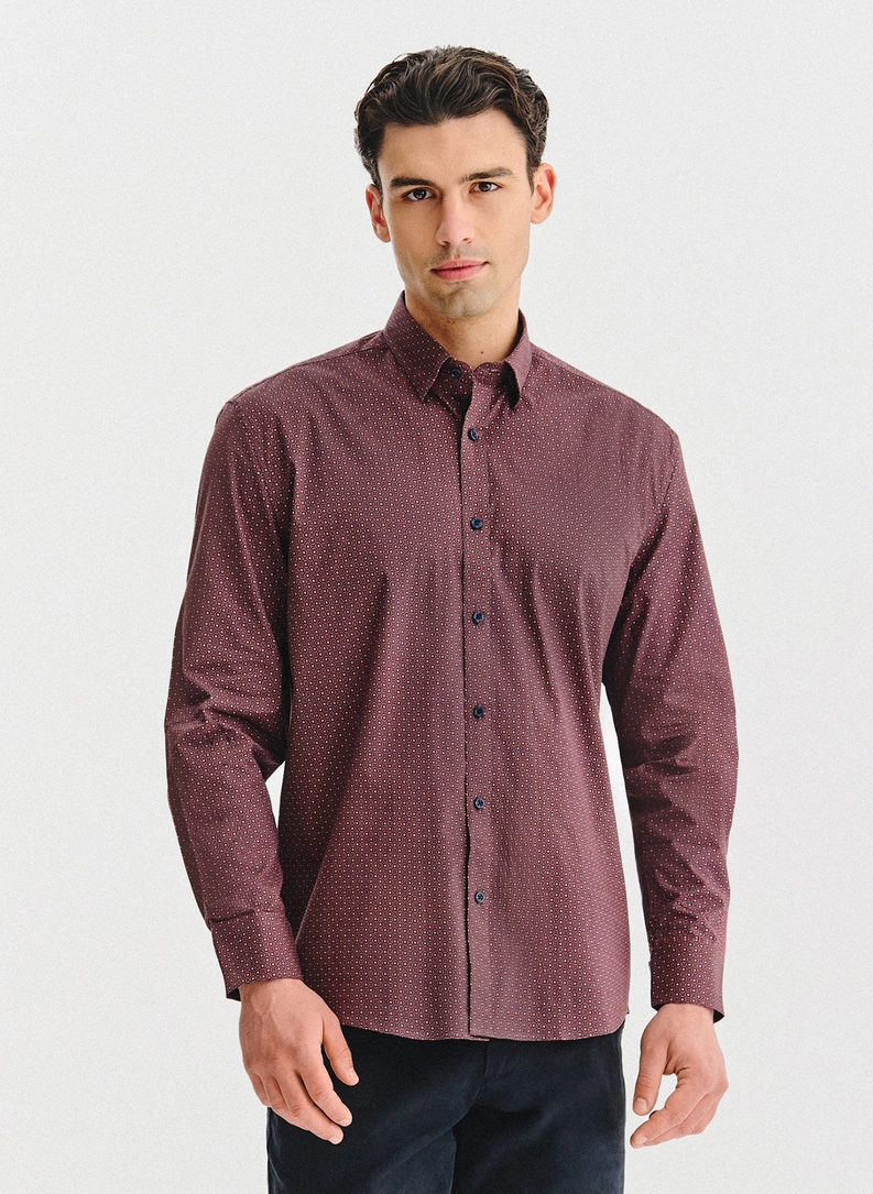Bordowa koszula w geometryczny wzór