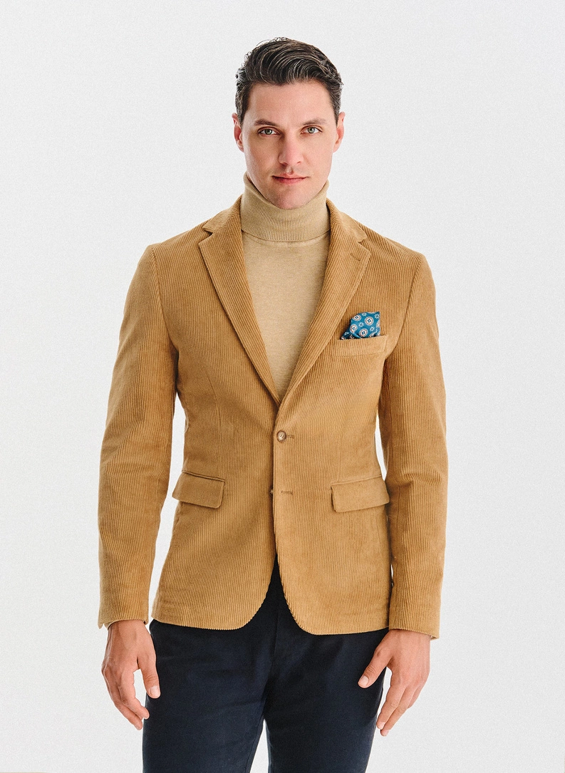 Opinie o Beżowa sztruksowa marynarka męska