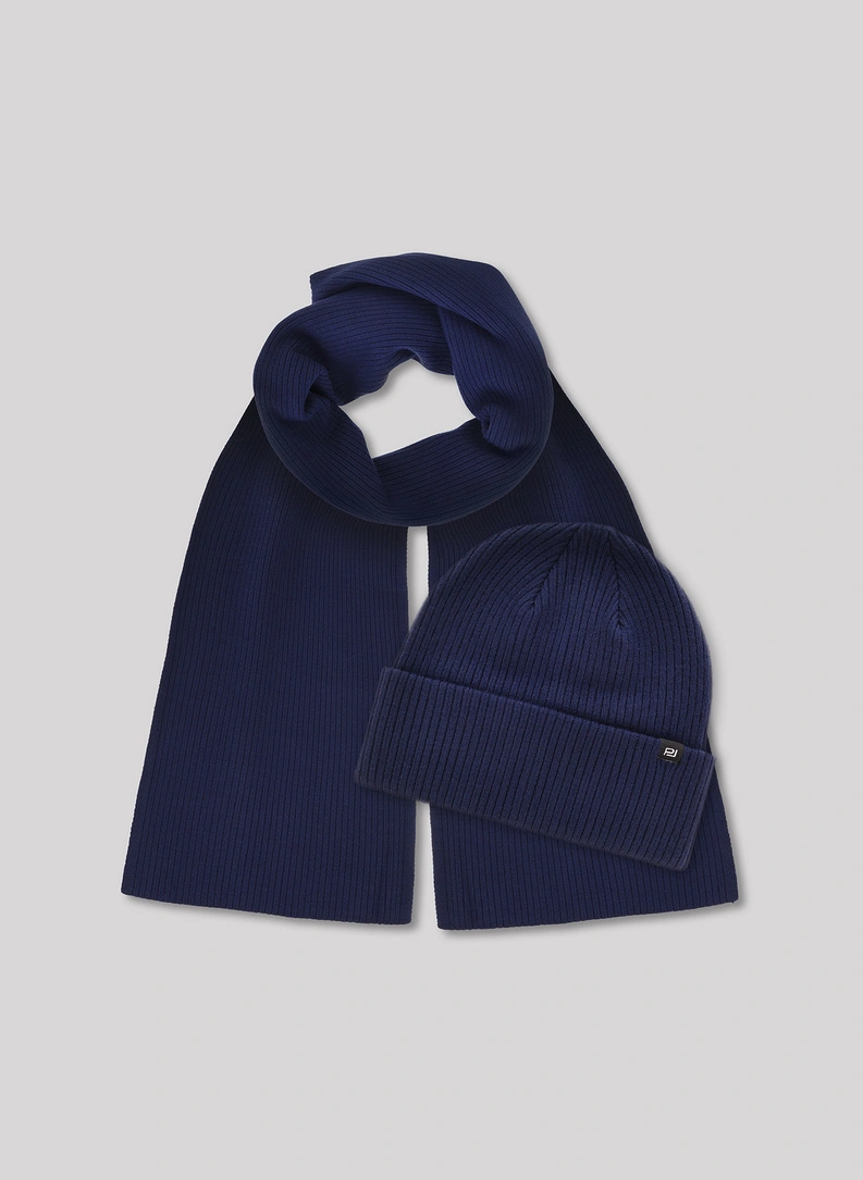 Granatowy komplet męski czapka i szalik P25WF-A/CX-012-G-0 Męski zestaw prezentowy w kolorze granatowym od Pako Lorente. W skład zestawu wchodzą: czapka P25WF-CX-012-G-0 i szalik P25WF-AX-012-G-0. Podaruj bliskiej osobie ten wyjątkowy prezent.