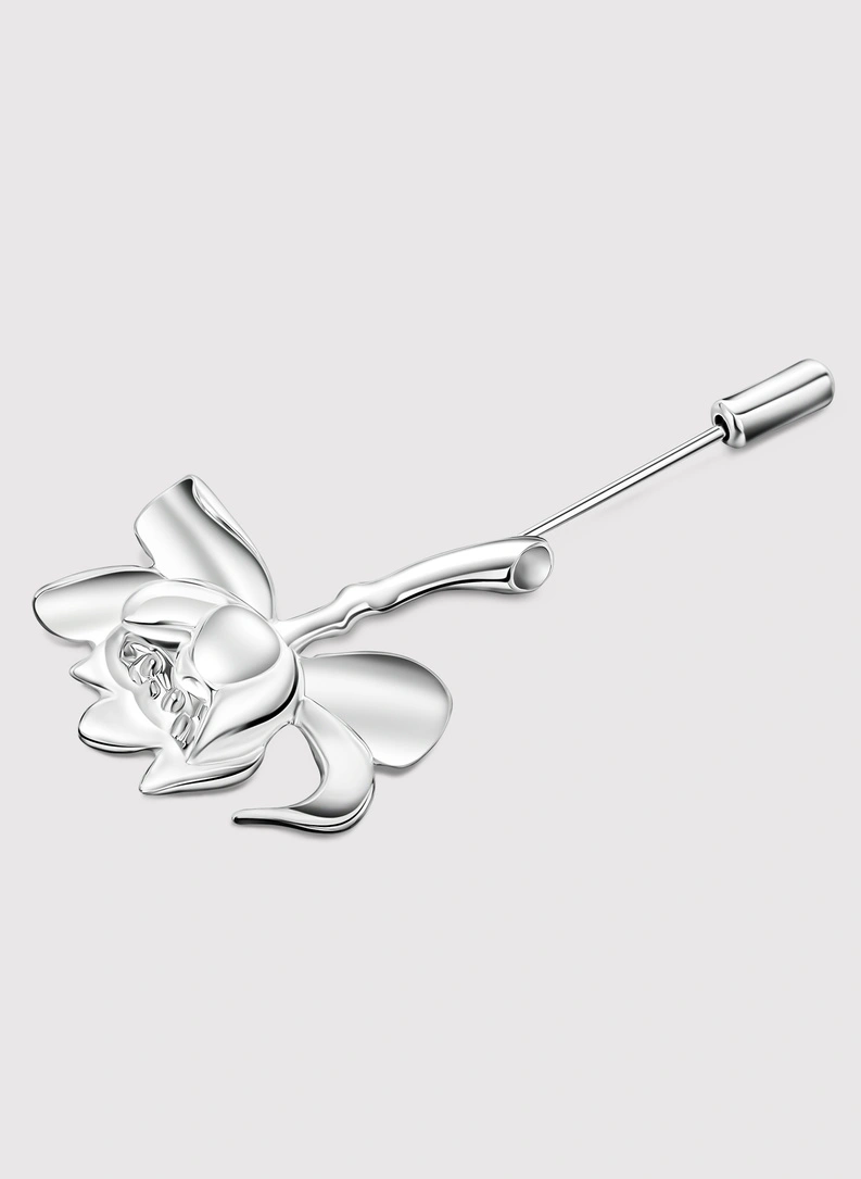 Srebrna szpilka do marynarki męskiej kwiat lotosu