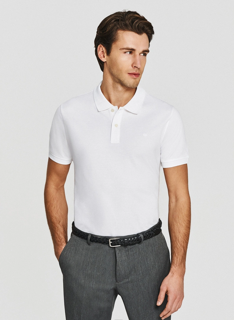 Białe męskie polo z bawełny