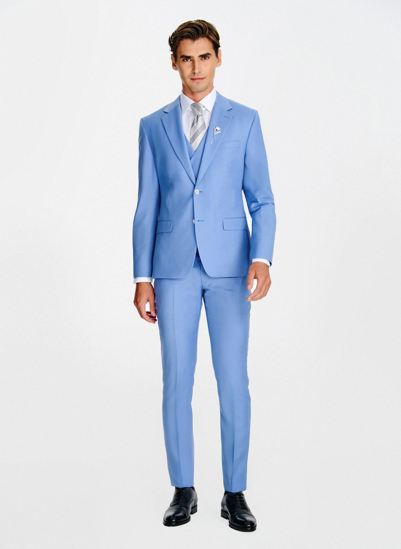 Niebieski wełniany garnitur męski