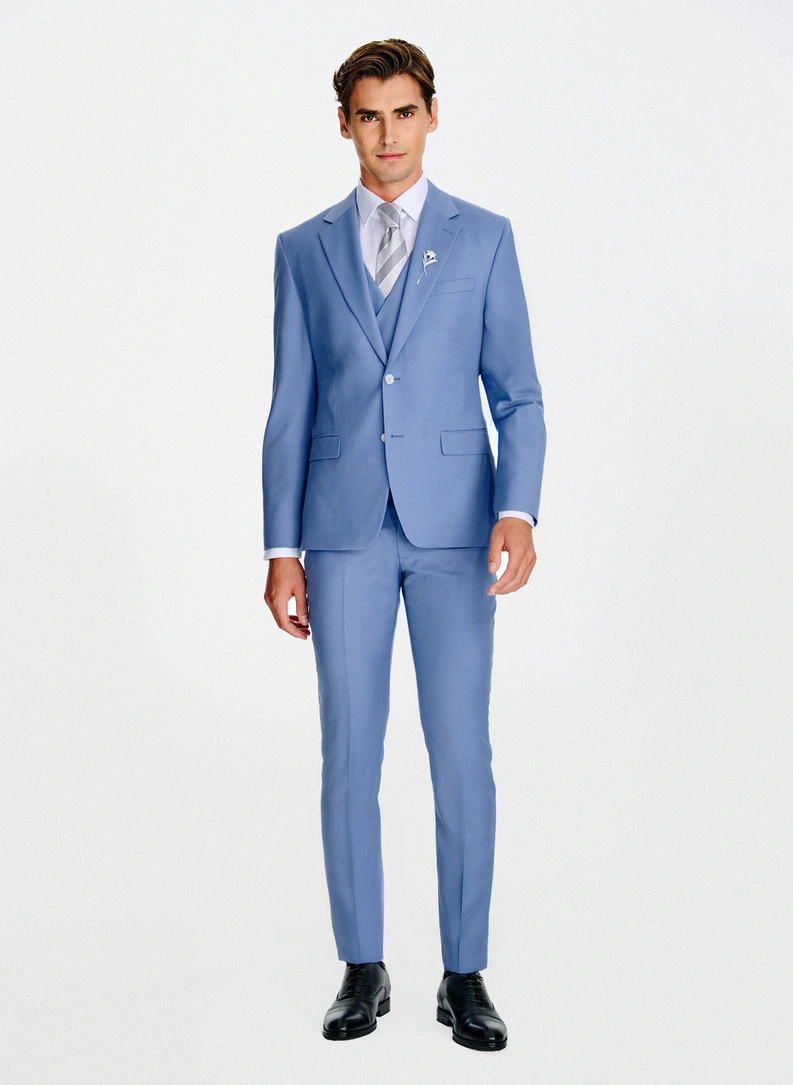 Ślubny niebieski garnitur z wełny P26SP-3/6/8G-003-N-S