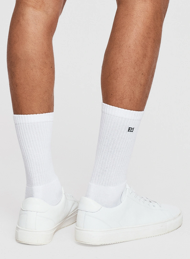 Białe skarpety męskie P26SF-SX-010-B-0 Te białe skarpety męskie to esencja wygody i stylu, wykonane z najwyższej jakości mieszanki bawełny. Pochodzą z nowej kolekcji linii Sportive. Gładkie w dotyku, idealne do codziennego użytku w każdej sytuacji.