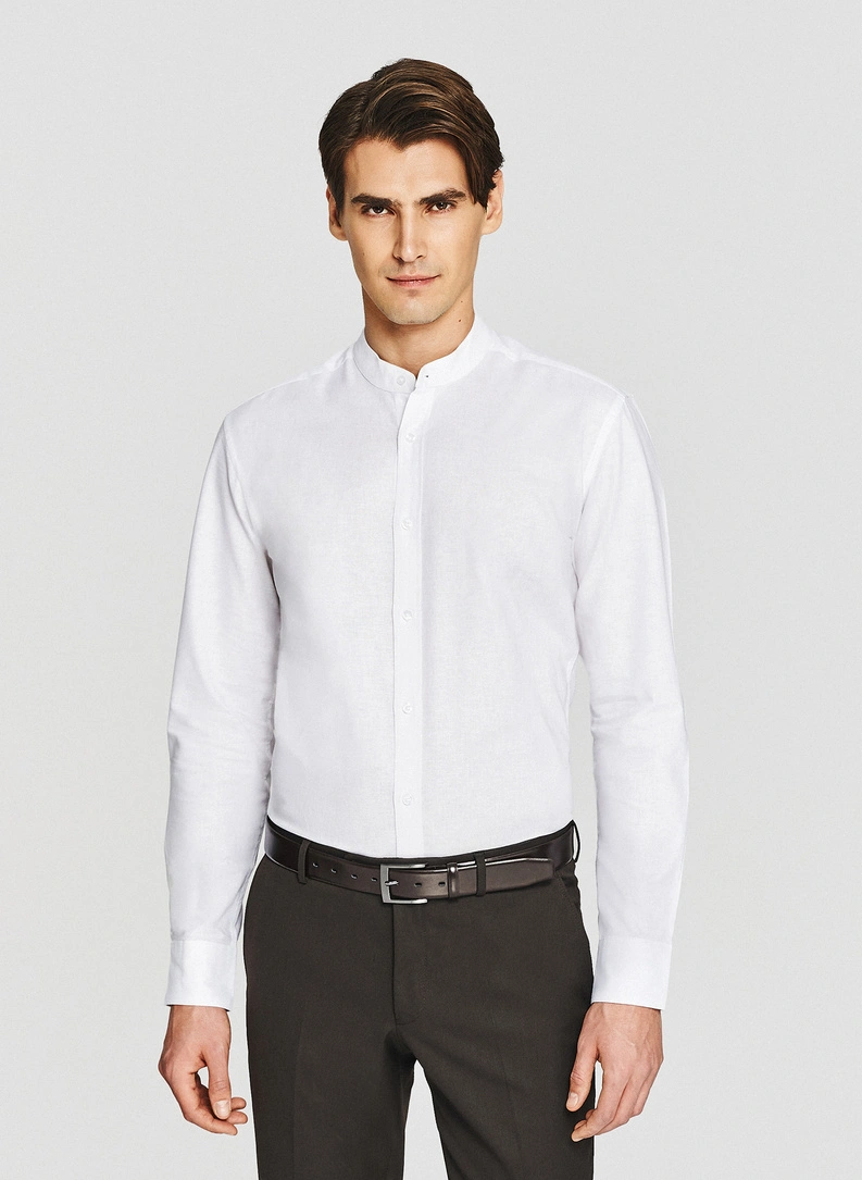 Lniana biała koszula z kołnierzem stójką