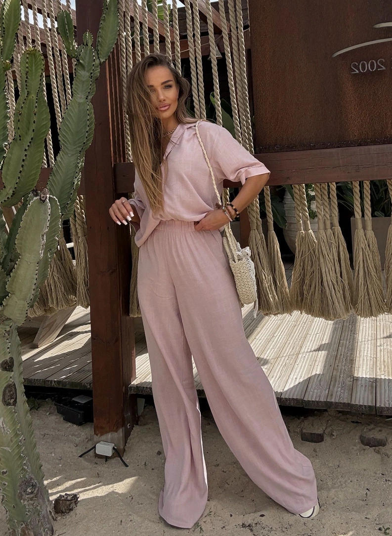 Lniany komplet damski CELEBRYTKA pudrowy róż