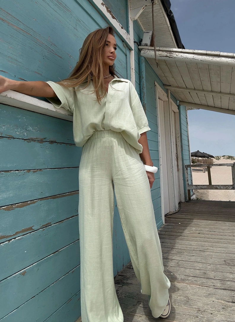 Lniany komplet damski CELEBRYTKA pistacja