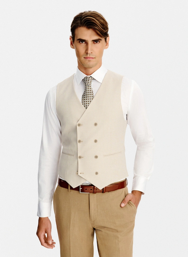 Beżowa kamizelka męska w pepitkę