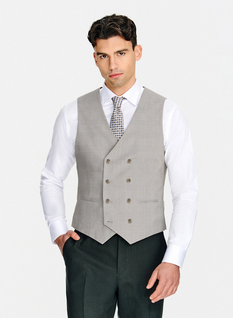 Szara dwurzędowa kamizelka w kratę