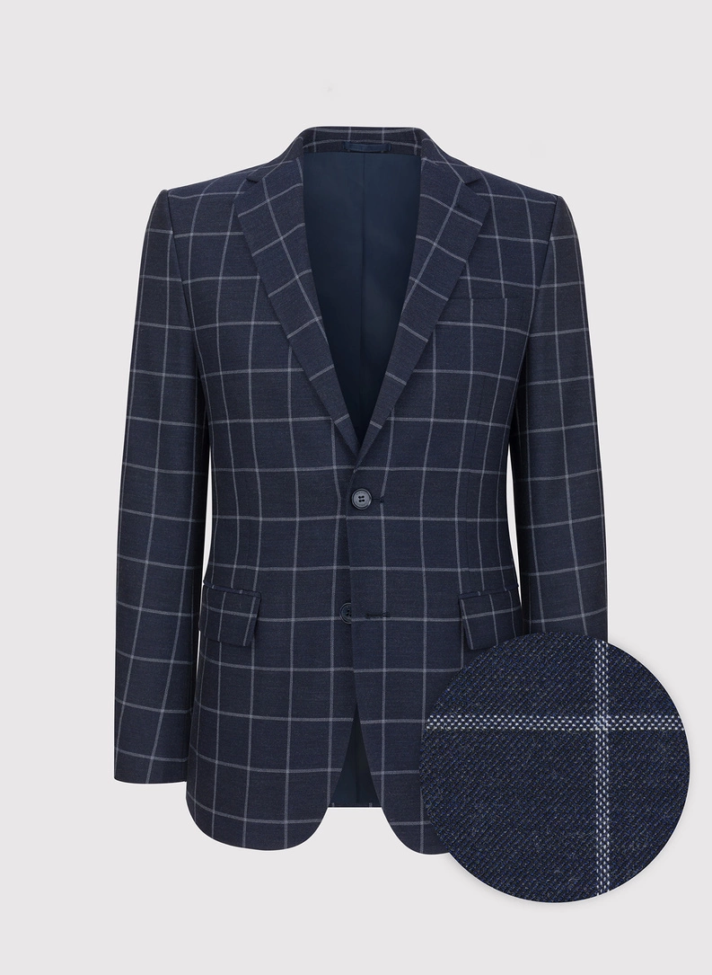 Casualowa granatowa marynarka w jasną kratę